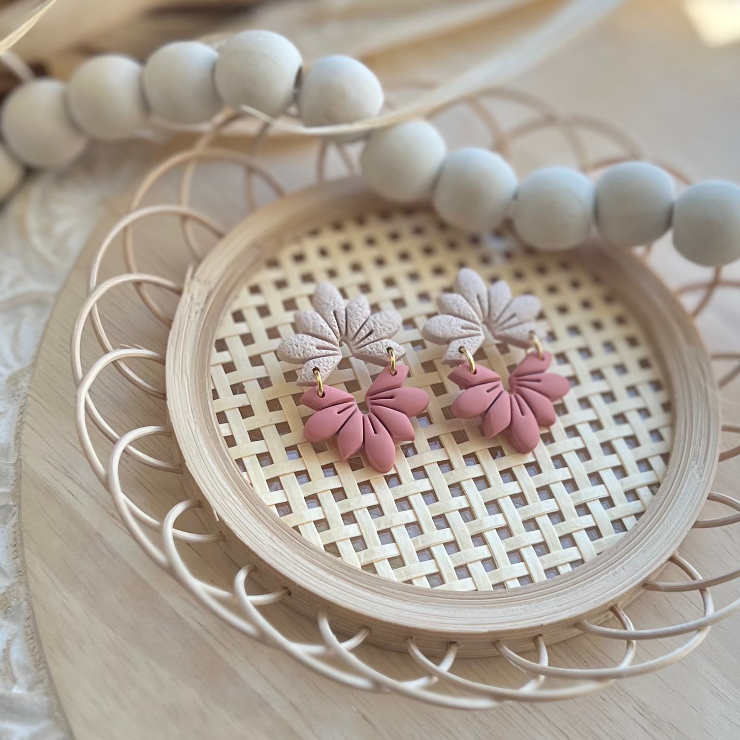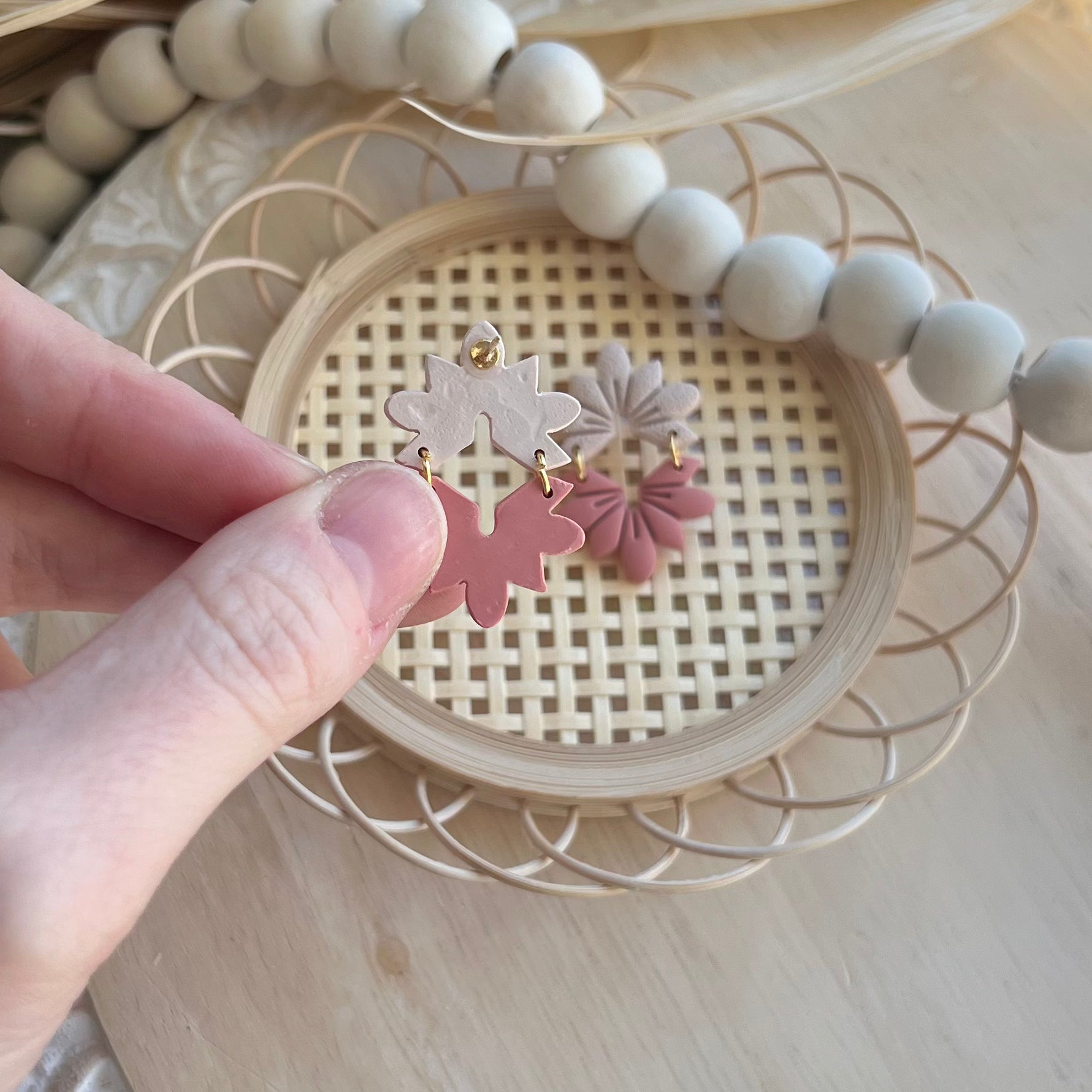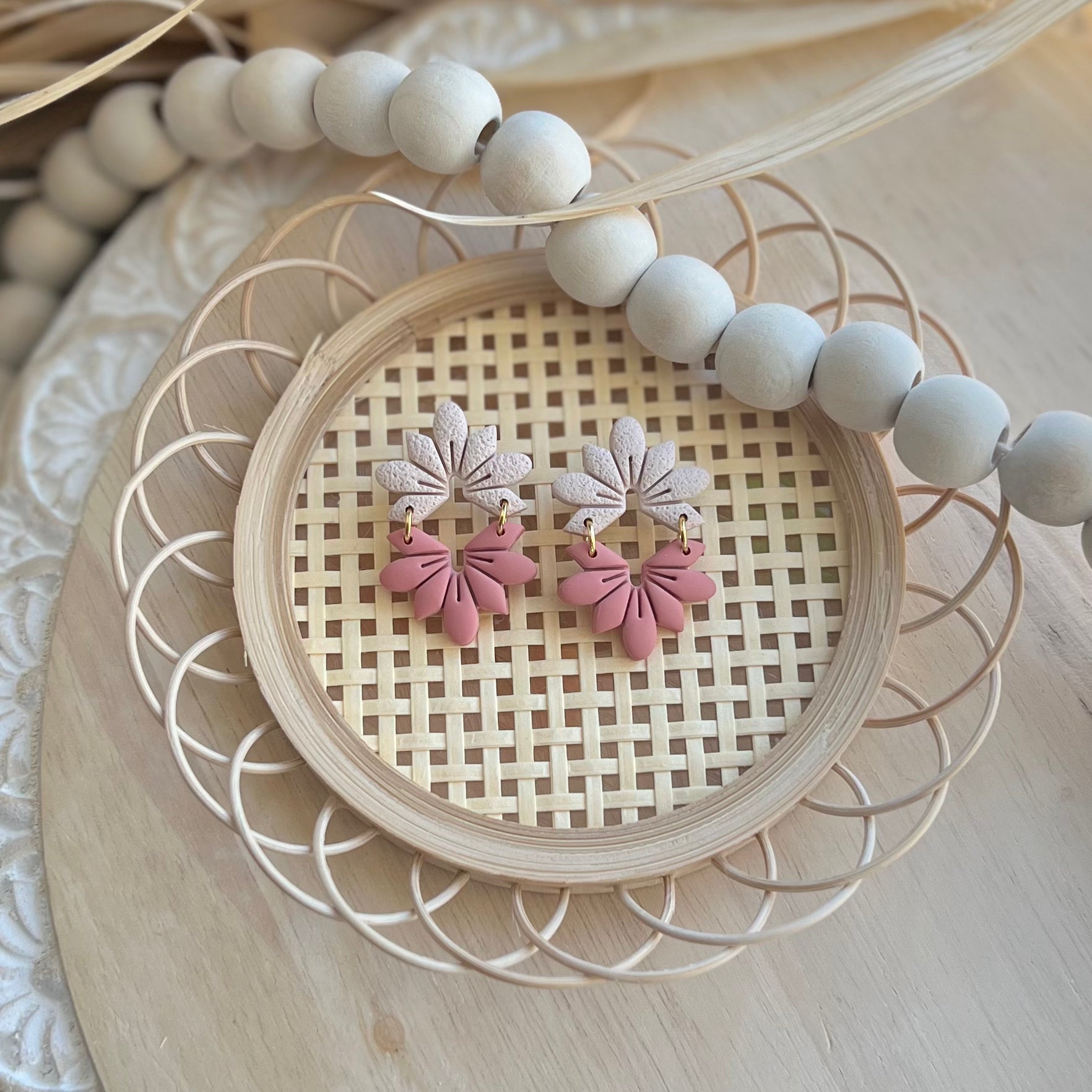 Lightweight polymer clay dangles with textured almond above solid coral. 12k gold plated posts sealed with resin. 25% of all sales donated to rescuing women from sexual exploitation.