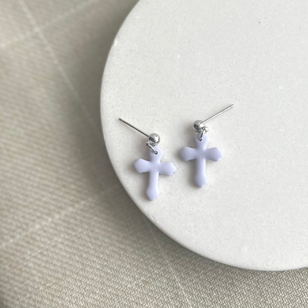 Hydrangea Clay Cross Charm on silver plated ball posts. Lightweight, durable polymer clay. 25% of all sales donated to rescuing women from sexual exploitation.