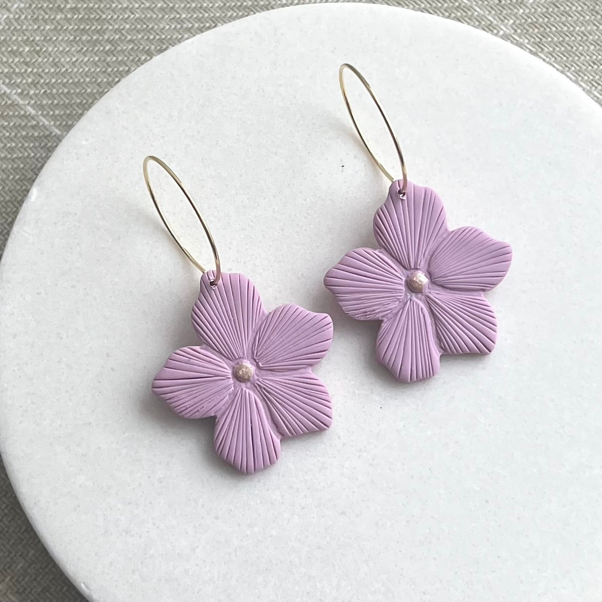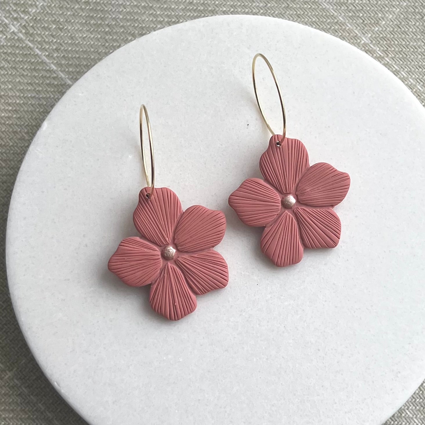 Textured, 1.25" embossed flower on 20mm gold plated hoops with painted gold center. Lightweight, durable polymer clay. 25% of all sales donated to rescuing women from sexual exploitation.