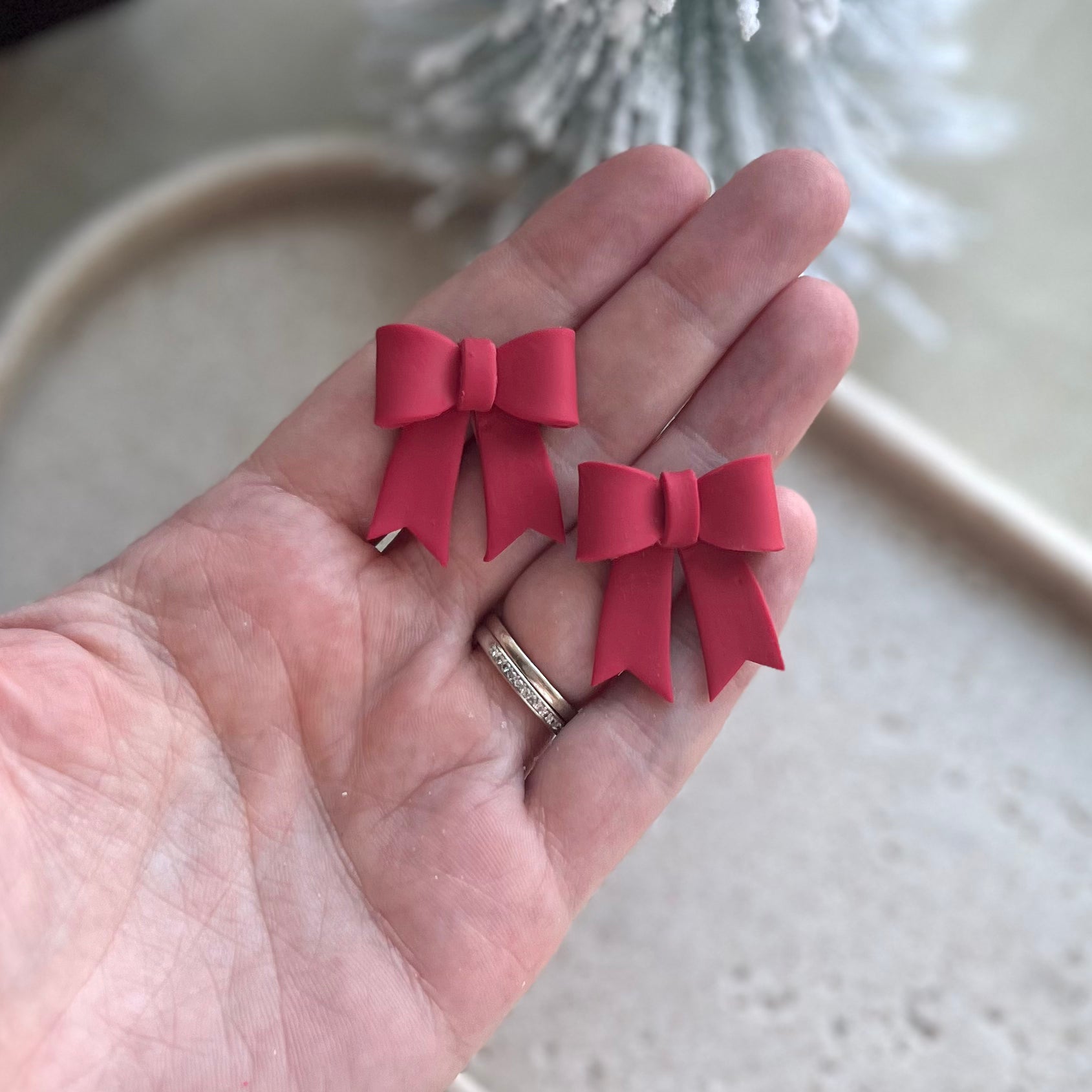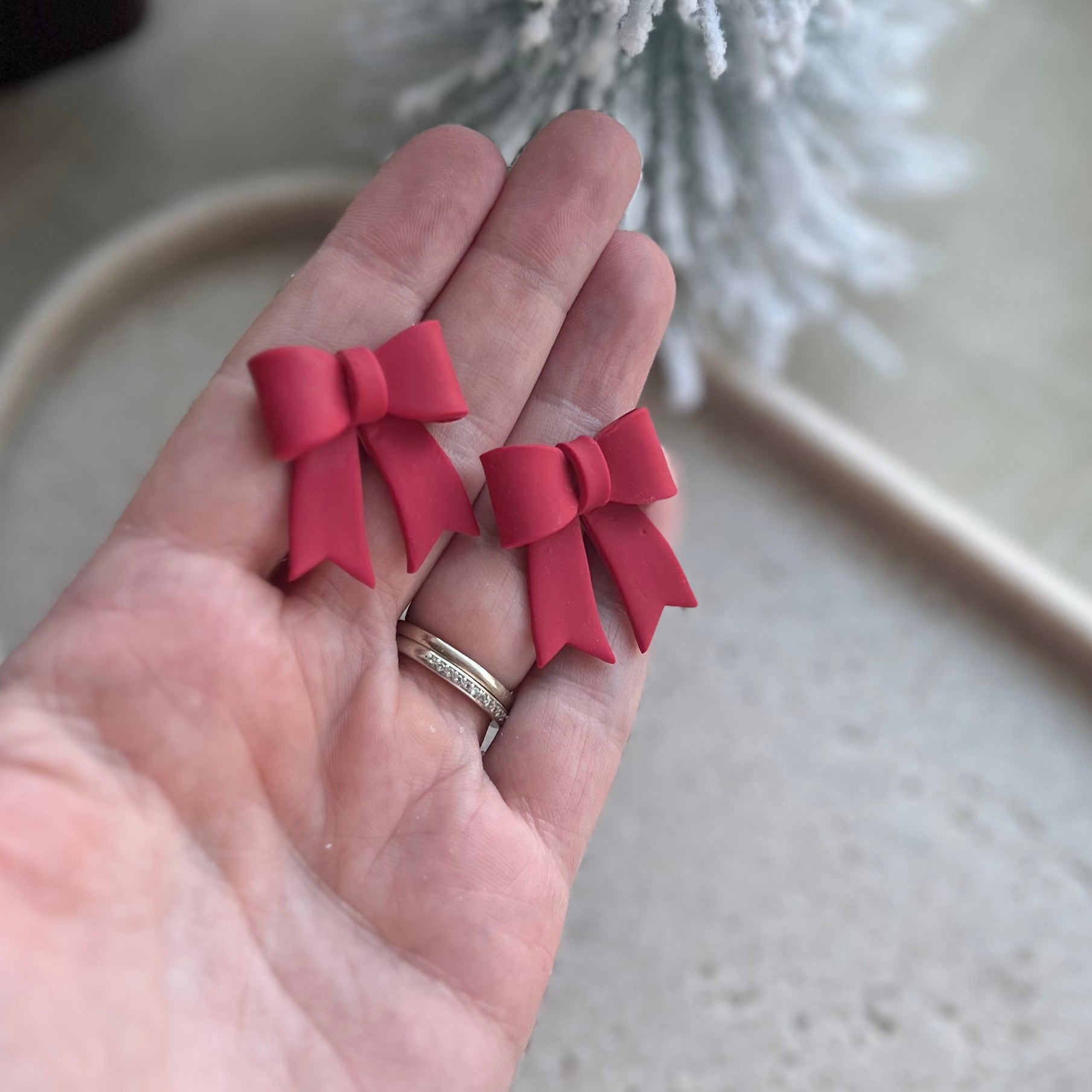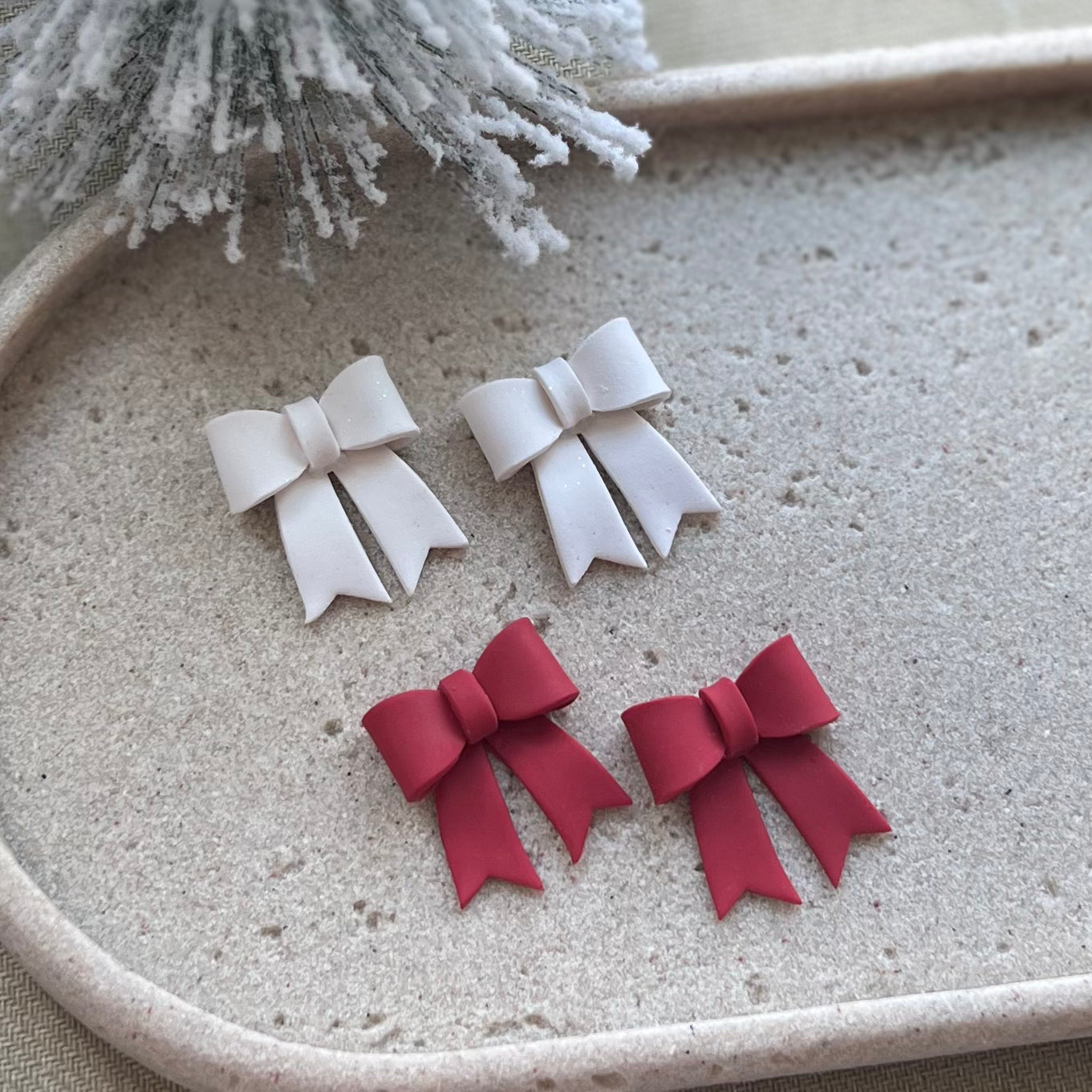 Statement 3D clay bows in glittery white polymer clay on 12k gold plated posts sealed with resin. 25% of all sales donated to rescuing women from sexual exploitation.
