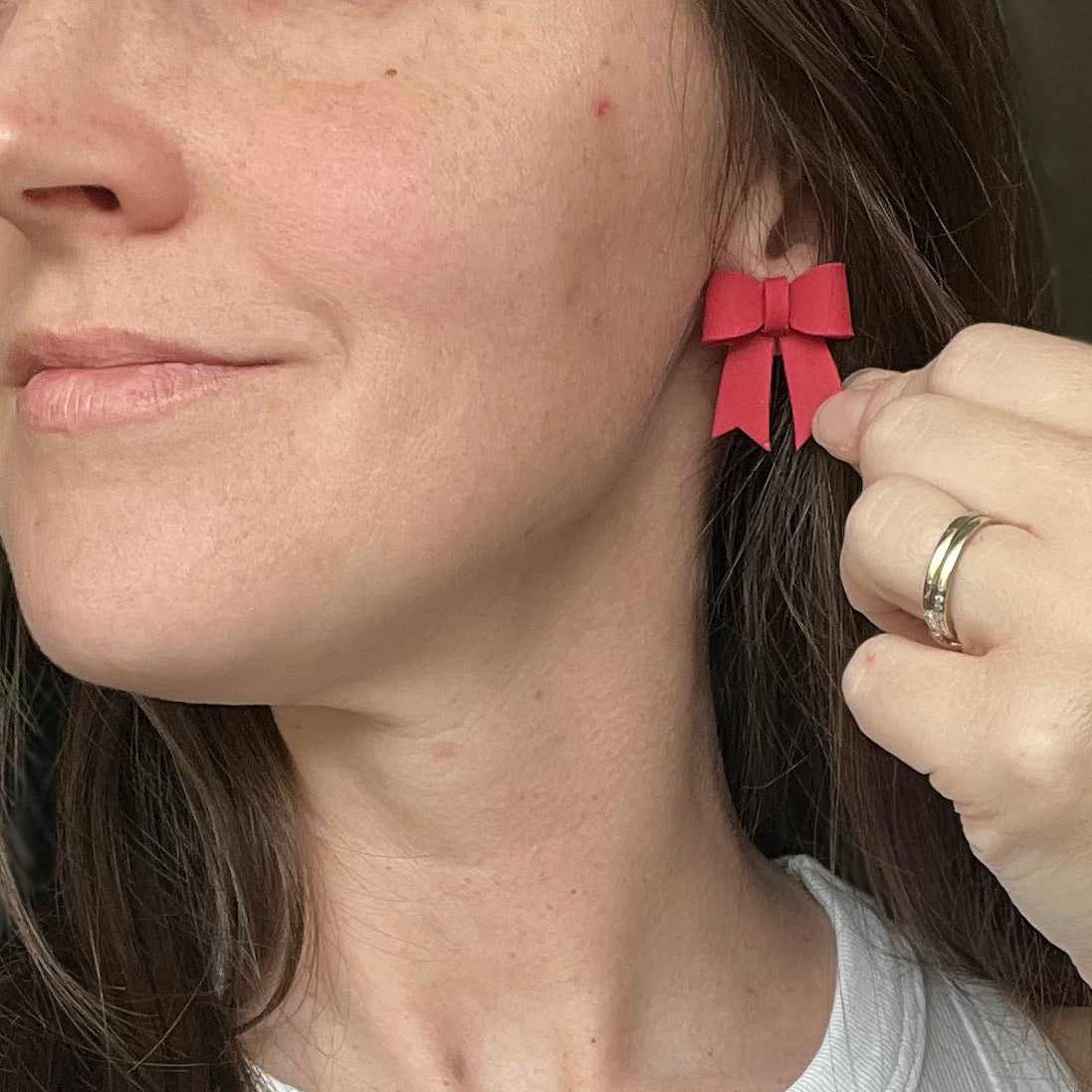 Red Bow Statement Studs
